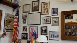 罗拉巴克议员在进入国会之前曾经是里根总统的演讲写作人。他的办公室墙上挂了很多他与里根总统的合照。
