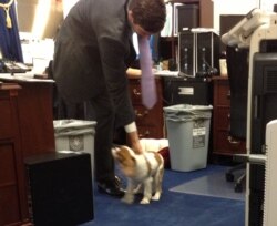 国会山很多办公室允许工作人员带狗上班,罗斯议员办公室里有两名助手带狗上班。